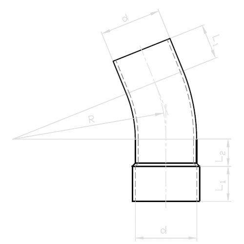 - Biegeradius R in Abhängigkeit vom Rohrdurchmesser